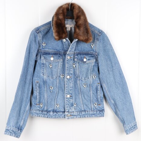 H&M - Jeansjacka med avtagbar pälskrage och strass - stl. 36