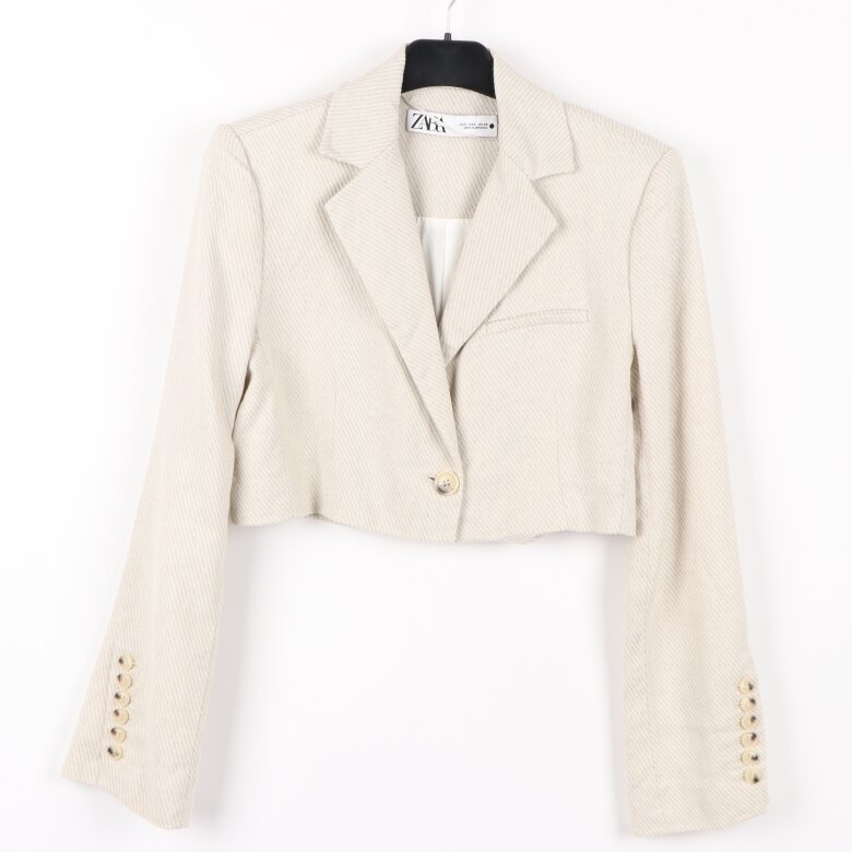 » Zara - Midjekort beige-och ljusrandig kavaj - stl. S