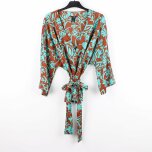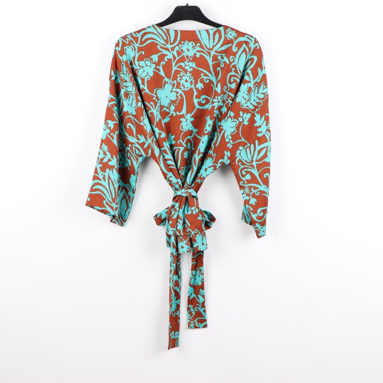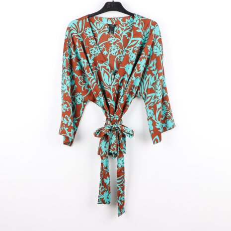 » Lindex - Brun blus med turkos blomtryck - stl. XL
