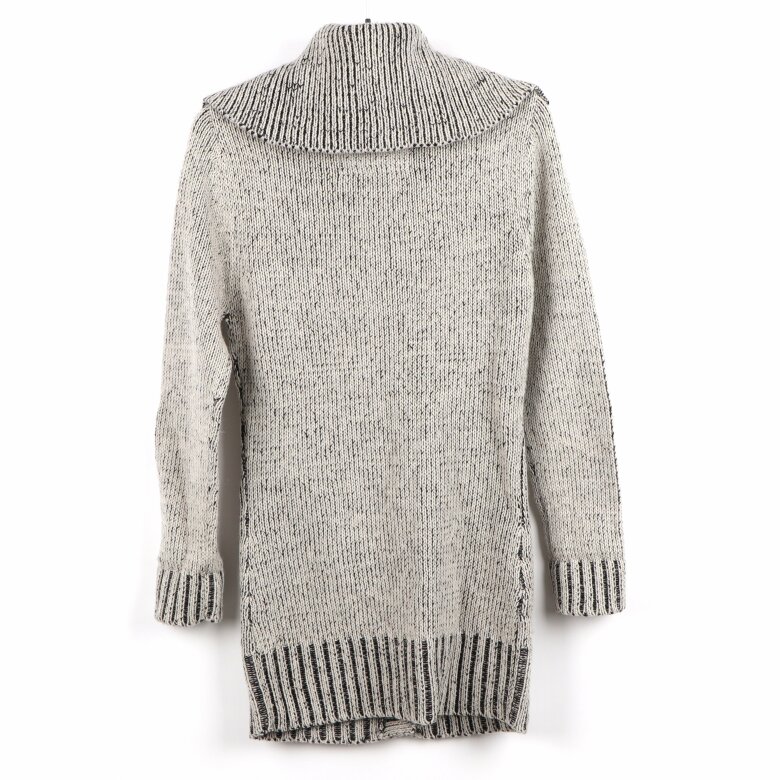 deVal Woman - Grå/vit - stickad kofta med stor krage - stl. S