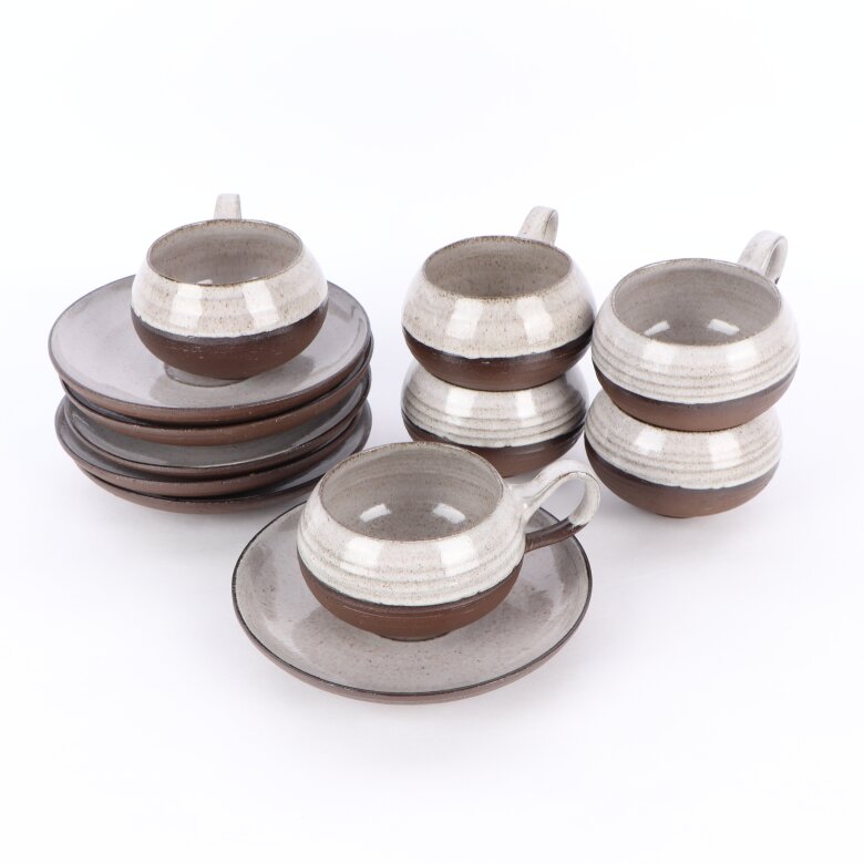 Övrigt: 1 st Mjölk/kaffekanna, 6 st Koppar med fat, 1 st Skål, 1 st Gräddkanna
