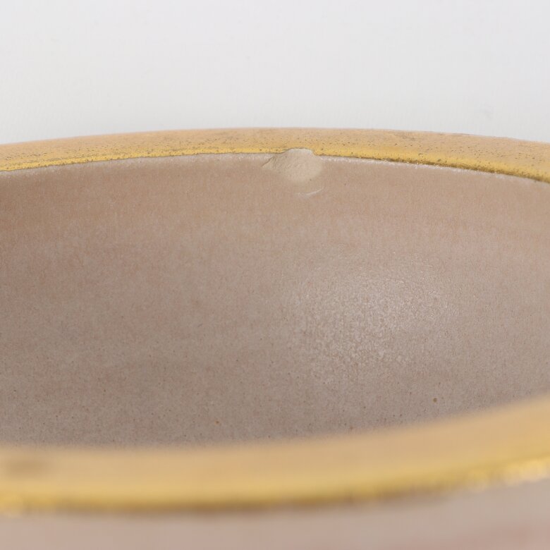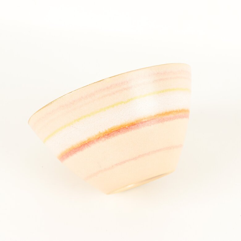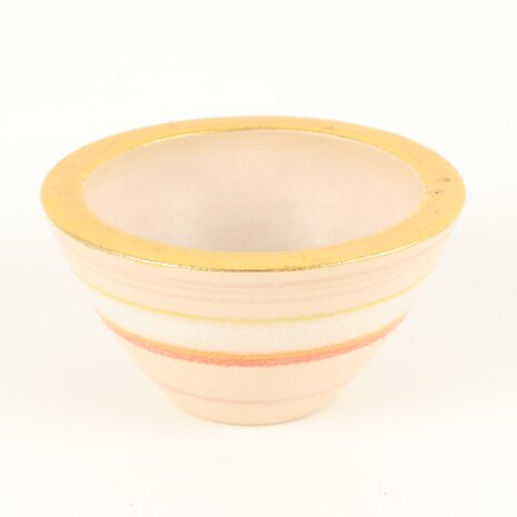 Produkt: Flerfärgad randig skål med gulddekor i keramik
