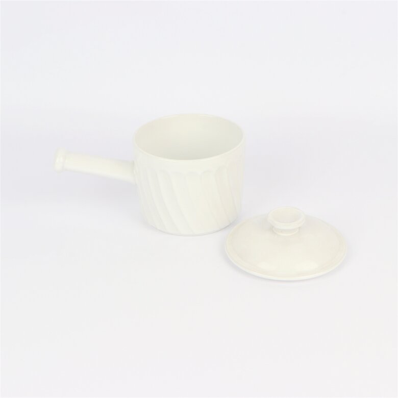 Varumärke: GustavsbergProdukt: Karott med handtag och lockMått: ca. L: 21cm, B: 12cm, H: 13,5cmFärg: VitMaterial: PorslinSkick: Använt Skick