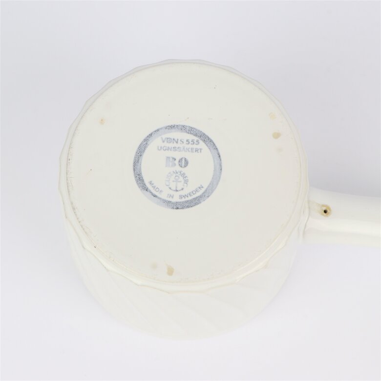 Varumärke: GustavsbergProdukt: Karott med handtag och lockMått: ca. L: 21cm, B: 12cm, H: 13,5cmFärg: VitMaterial: PorslinSkick: Använt Skick