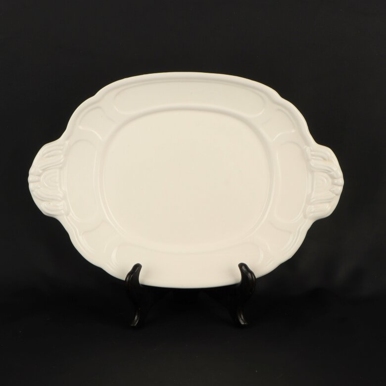 Produkt: Vtt serveringsfatMått: ca: H: 3cm, L: 34cmFärg: VitMaterial: PorslinÖvrigt:Skick: Använt Skick